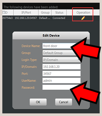 NOTE: Click the "Pen" icon on the right screen. Name the device, such as "front door".