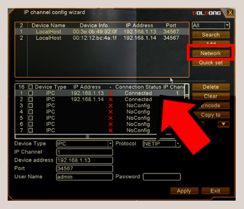 2.Select the device you are trying to change the IP address. Press "Network" on the right side.